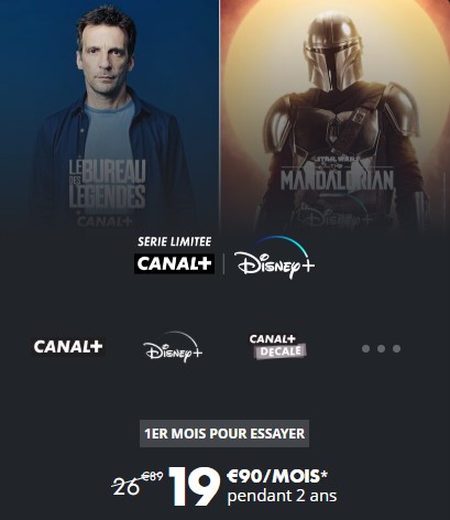 Vous souhaitez ajouter du contenu à votre offre télévisée actuelle mais aussi bien pour les grands que pour les enfants ? Cette promo Canal+ devrait alors vous intéressé car elle intègre CANAL+, CANAL+ Décalé et toute l'offre Disney plus pour seulement 19,99€/mois. Cette offre CANAL+ est soumise à un engagement de deux ans mais vous avez un mois pour essayer au cours duquel vous pouvez arrêter votre abonnement si vous n'êtes pas satisfait.