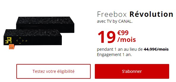 La Freebox Révolution offre plus de service que la Mini 4K, ce qui justifie un prix un peu plus élevé. Free propose cette box internet à 19,99€/mois pendant un an avec un engagment d'un an. Ensuite la Freebox révolution sera facturé à 44,99€/mois mais sera sans engagement. Grâce à la Freebox Révolution, vous pourrez appeler en illimité vers les fixes et les mobiles en France et dans les DOM.