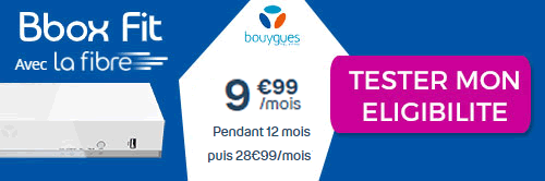 -65 % ! Voilà la réduction que vous propose Bouygues Telecom sur sa Bbox Fit à l’occasion de sa promo spéciale rentrée disponible jusqu’au 20 septembre 2020. En profitant de cette offre exceptionnelle avec engagement d’un an, vous ne débourserez donc que 9,99 €/mois la première année. Si vous poursuivez votre abonnement au-delà de cette période, vos mensualités passeront à 28,99 €.