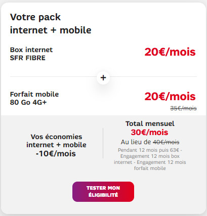 Avec l’offre mobile SFR 80 Go, bénéficiez d’un forfait maxi data à prix cassé ! L’intégralité de votre volume internet sera d’ailleurs utilisable depuis la France métropolitaine, les DOM, l’Europe, la Suisse et Andorre. Plutôt intéressant, non ?