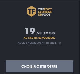 - promo TELEFOOT à 19,90€/mois pendant un an puis 25,90€/mois avec un engagement de douze mois