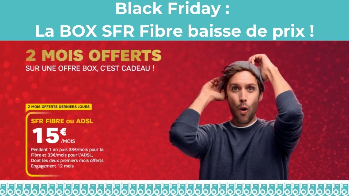 Le fournisseur SFR a décidé de participer au Black Friday qui a été repoussé d'une semaine en raison du confinement. En effet à compter de ce vendredi 4 décembre et jusqu'au lundi 7 décembre inclus, SFR propose son offre Fibre à seulement 15€ par mois pendant 1 an avec en prime les deux premiers mois gratuits. Cette promotion réservée aux nouveaux abonnés est valable en Fibre mais aussi en ADSL.