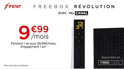 Free propose deux ventes privées fixe et mobile via le site Veepee. Pour la partie Internet, il s'agit d'une remise exceptionnelle sur la Freebox Révolution By Canal. Cette dernière est effectivement bradée à 9.99€ par mois pendant 1 an avant de repasser à son prix de base de 39.99€ par mois. Avec cet abonnement, vous disposez d'une connexion Internet, du téléphone illimité et de la TV.