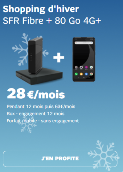 SFR a frappé fort avec ce super pack box + mobile ! C'est le moment pour faire des économies. On vous explique tout de suite ce super deal ! Il s'agit donc d'un pack contenant une box internet fibre ainsi qu'une forfait mobile 80Go 4G+. Le tout pour le prix de 28€ par mois !