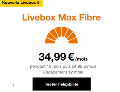 Nouvelle offre internet premium proposée par Orange, la Livebox Max est affichée au prix réduit de 34,99 € mensuels la première année. Suite à cette période d’un an de réduction, qui correspond également à la durée d’engagement, le montant facturé dépendra de la technologie choisie pour se connecter en ligne : 54,99 € par mois avec la fibre optique ou 49,99 € par mois avec l’ADSL.