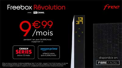 Top départ pour la vente privée Freebox ! Le fournisseur vous propose pour cette édition spéciale rentrée 2022 sa Freebox Révolution avec Canal+ Séries inclus au prix fou de seulement 9.99€ par mois. Cette promotion exceptionnelle qui tombe à pic à l'approche de la rentrée est valable jusqu'au 24 Août 6h en exclusivité sur le site Veepee. Ce tarif réduit est appliqué pour une période de 12 mois que vous soyez éligible à la fibre optique ou éligible à l'ADSL. A l'issue de la première année, ce forfait Freebox repasse à son prix de base à savoir 39.99€ par mois et le bouquet Canal+ Séries habituellement facturé à 6.99€ par mois sera automatiquement interrompu.