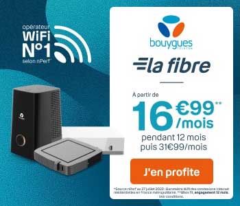 Si vous cherchez une alternative à la Freebox Revolution, Bouygues Telecom vous propose une offre intéressante avec sa BBOX Fit à seulement 16,99€ par mois pendant un an, incluant une connexion Internet Fibre optique jusqu'à 400 Mb/s en téléchargement et envoi, l' illimité pour appeler vers les fixes de France métropolitaine, des DOM et de plus de 110 destinations. Bouygues Telecom vous remboursera également jusqu'à 100€ sur les frais de rupture de contrat de votre précédente offre Internet. Notez que les frais d'activation sont de 48€ et les frais de résiliation de 59€ si l'abonnement ne vous convient pas.