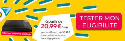 Sosh également à une offre fibre intéressante, qui en plus vous permet de profiter du réseau de Orange. Avec jusqu'à 300 Mbits/s en téléchargement et 300 Mbits/s en envoi, vous accéder à un débit excellent soutenu par le réseau Orange. En ce qui concerne vos communications, vos appels sont illimités vers les fixes en France métropolitaine et dans les DOM, mais aussi vers plus de 100 destinations internationales ! Et si vous aimez la TV, vous pouvez souscrire en option payante à un décodeur TV et son décodeur Ultra HD 4K. Le tout pour 20,99 € pendant un an puis 30,99 € sans engagement ! Et vous avez jusqu’à 100 € de remboursés sur vos frais de résiliation.