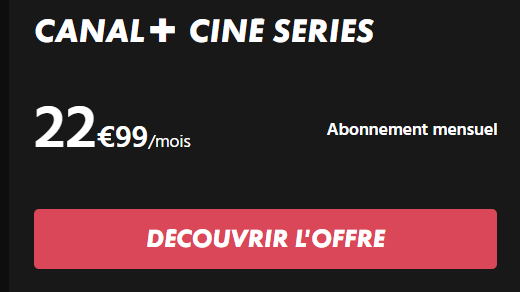 Cet abonnement est idéal pour les cinéphiles et amateurs de séries. Pour 22,99€ par mois, vous profitez de tout le cinéma de CANAL+ avec les plus grandes chaînes et services de streaming cinéma et séries. Avec une box internet et un débit suffisant, vous n’allez pas voir le temps passer !