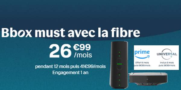 Bbox Must : la fibre à 26,99€ par mois avec Prime Vidéo offert