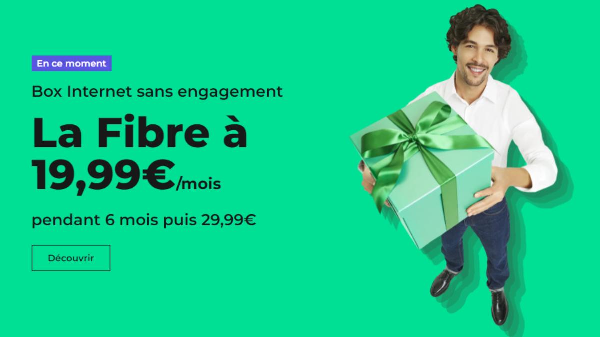 En matière d’abonnement internet Fibre pas cher et sans engagement, l’offre box RED by SFR est une valeur sûre. Coûtant 29,99 € par mois en temps normal, cette formule est actuellement affichée à 19,99 € par mois pendant 6 mois. Grâce à cette réduction, il est ainsi possible d’économiser un total de 60 €. Et ce n’est pas fini : en cette période de Noël, le premier mois est offert !