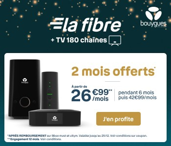 En cette période de Noël, Bouygues Telecom vous propose de conclure l’année en beauté avec une superbe promo web sur les abonnements Bbox Must et Bbox Ultym. Jusqu’au 25 décembre 2023, l’opérateur vous offre effectivement les deux premiers mois pour toute souscription à l’une de ces formules internet triple play. Plutôt chouette comme cadeau, non ? Alors, n’hésitez pas à sauter sur l’occasion… car ce sont les derniers jours pour en profiter !