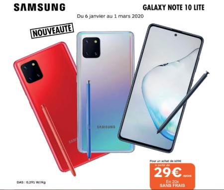 Les consommateurs aux budgets restreints seront ravis d’apprendre que du 6 janvier au 1er mars 2020, Boulanger propose le Samsung Galaxy Note 10 Lite à partir de 29€ par mois en 20 fois sans frais (montant total de 609€).