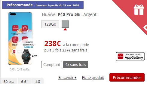 Huawei P40 Pro dès 238€ à la commande puis 3 mensualités