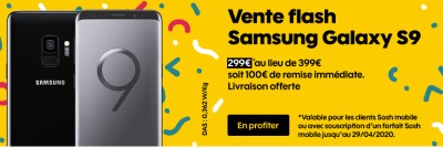 Le Samsung Galaxy S9 est en vente flash jusqu'au 29 avril 2020 chez Orange et sa marque 100% digitale d'Orange. Ces deux opérateurs vous permettent d'économiser 100€ à la commande pour l'achat de ce Smartphone Samsung. Grâce à cette ristourne, le Galaxy S9 passe au prix de 299€ au lieu de 399€. Cette offre est valable pour l'achat de ce Smartphone sans abonnement via Orange ou associer à un forfait SOSH sans engagement à partir de 4.99€ par mois ou encore pour les clients SOSH mobile. Le Smartphone est vendu débloqué tous opérateurs dans les deux cas et expédié sous 72 heures sans frais.