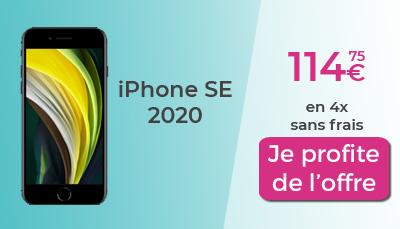 Chez Sosh l'offre est légèrement différente mais tout aussi intéressante. Ici, vous pouvez acheter l'iPhone SE 2020 au même prix que chez RED mais en 4 fois sans frais, soit 4 versements de 114,75€ ! Si vous ne souhaitez pas dépenser une grosse somme d'argent, cette promo devrait vous convenir. La condition de cette promo iPhone est d'être abonné Sosh ou de le devenir. Si vous n'êtes pas abonnés Sosh, nous vous conseillons de souscrire à la promo forfait mobile 80Go à 14,99€/mois. C'est un forfait sans engagement que vous pourrez résilier à tout moment et qui vous permettra de profiter du paiement en 4 fois sans frais.