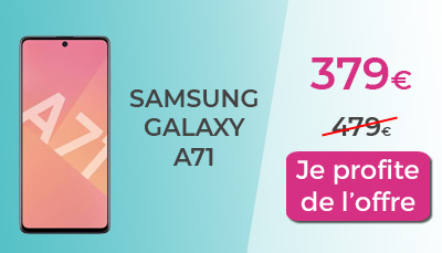 L'offre du constructeur Samsung concerne aussi le Galaxy A71. Vous pouvez en effet profiter d'un remboursement différé sur ce modèle pour un achat effectué entre le 1er juin et le 31 juillet. Chez RED by SFR où vous trouverez ce modèle au prix le plus attractif, vous pourrez donc acheter cette promo smartphone pour seulement 379€ au lieu de 479€. Le Galaxy A71 est disponible en trois coloris avec un stockage interne de 128Go. Il ne vous reste plus qu'à choisir !