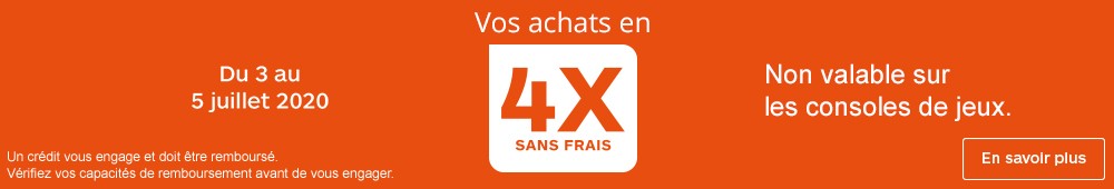 Du 3 au 5 juillet 2020, il se présente une super occasion chez Boulanger ! Il sera possible lors de ces dates de payer vos achats en 4X sans frais. Pour ce faire, vous disposez de deux choix possibles. Après avoir mis l'article que vous désirez dans votre panier, vous pouvez payer par carte bancaire en 4 fois sans frais. Vous avez également l'option de payer avec votre carte b+, puis, choisir l'option "payez en 4 fois sans frais". Si vous n'avez pas de carte b+, pas de panique, l'ouverture de celle-ci est rapide et se fait en ligne.