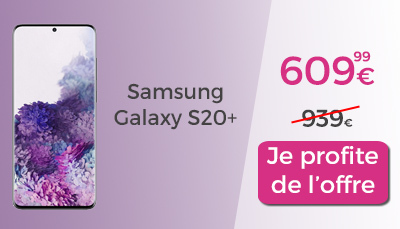 - Le Samsung Galaxy S20+ 128 Go est quant à lui à 609,99€ au lieu de 939€ avec également ce code promo RAKUTEN20