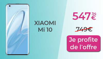 Si vous préférez les modèles Xiaomi et en particulier leur dernier flagship Mi 10, Rakuten offre ici aussi une belle promo. Disponible chez toutes les enseignes à 749€, le Xiaomi Mi 10 est affiché chez Rakuten avec une économie de 200€ ! Vous pouvez dès maintenant l'acheter pour 547,34€ avec une garantie de 24 mois et la livraison gratuite.