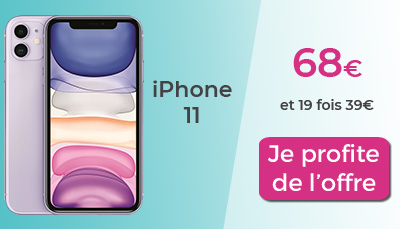 Cette offre est valable sur l'iPhone 11 quelque soit la couleur et dans toutes les déclinaisons de stockage interne (64Go, 128Go, 256Go). L'iPhone 11 est doté d'un double capteur photo, de la puce la plus puissante du marché Bionic A13 et 4Go de mémoire vive. Le tout se trouve dans un format de 6,1 pouces.
