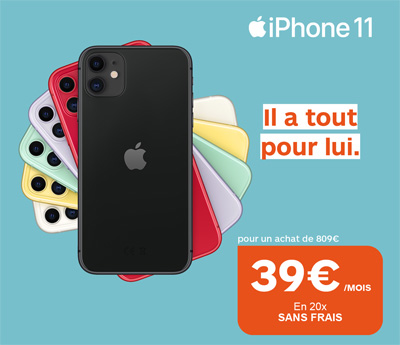 Boulanger propose du 18 août au 6 septembre une belle offre de rentrée sur l'iPhone 11. L'enseigne spécialisée dans l'électroménager et l'High-Tech offre la possibilité d'acheter le nouvel iPhone 11 en 20 fois sans frais. Vous pouvez donc vous offrir le nouveau modèle de la marque à la pomme dès 39€/mois ! Après un premier versement de 68€, Boulanger vous permet de payer 19 mensualités de 39€ afin de pouvoir acquérir l'iPhone 11 sans impacter votre budget de la rentrée !