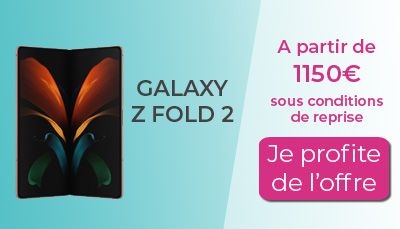 Grâce à l'offre de reprise proposée par Boulanger, vous pouvez acquérir le Samsung Galaxy Fold 2 pour seulement 1150€ au lieu de 2020€. En effet, si vous aviez craqué auparavant pour la première version du Samsung Galaxy Fold, Boulanger vous le reprend pour une valeur de 670€ et rajoute en plus 200€ de bonus pour tout achat du Z Fold 2. Faites ainsi 870€ d'économies. Le montant de la reprise pourra varier selon l'état, l'année et la configuration de l'appareil repris. Cette offre est valable en magasin uniquement et jusqu'au 30 septembre seulement.