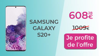 Vous êtes plutôt un fan des smartphones Samsung ? Profiter don de la belle promotion sur le Galaxy S20+. Vous pouvez acheter ce nouveau modèle à 608,29€ au lieu de 1009€, soit une remise immédiate de 400€ ! Rakuten vous offre en plus un remboursement de 60,83€ sous forme de bon d'achat pour une prochaine commande. Cette offre vous permet de finalement profiter du Samsung Galaxy S20+ à seulement 547,45€.
