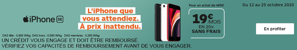 Comment est-ce que l'offre fonctionne ? C'est très simple, il faudra régler un apport obligatoire de 128€ au départ, qui sera suivi de 19 mensualités de 19€. Après l'achat de votre commande, vous aurez 14 jours pour changer d'avis. Si non satisfait, vous pourrez ainsi rendre l'appareil chez Boulanger. Vous voulez en savoir plus sur l'iPhone SE 2020 ? N'hésitez pas à jeter un coup d'oeil au paragraphe suivant.