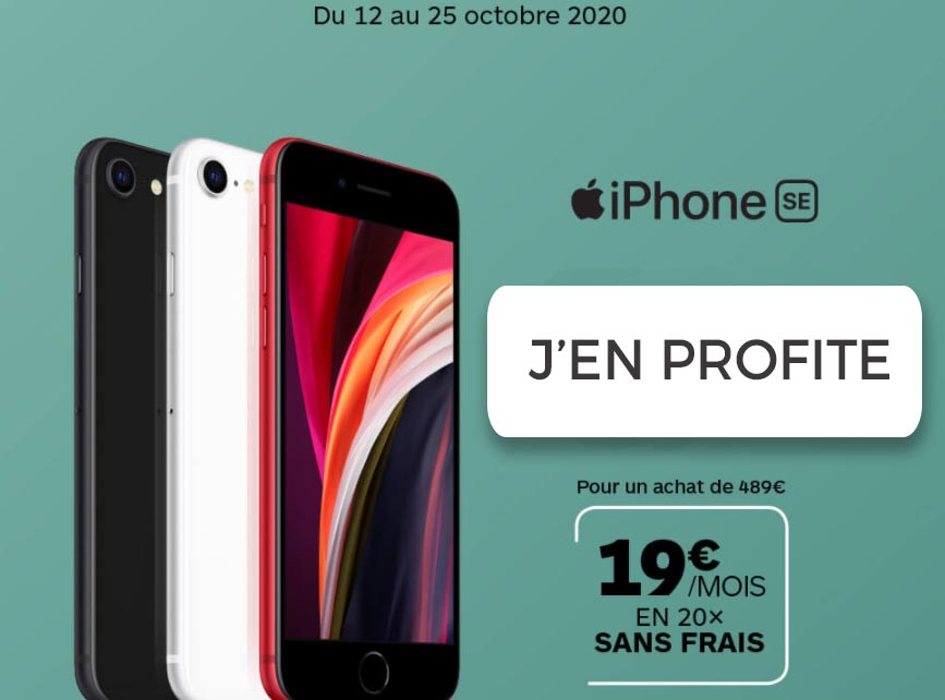 L'enseigne Boulanger propose l'iPhone SE au prix de 489€. Disponible en noir, blanc et rouge, ce smartphone a été un des plus tendance de l'année 2020. Payez 20 fois sans frais le téléphone de vos rêves et ne vous souciez plus des crédits, car celui-ci est affecté au taux débiteur de 0% ! Difficile à croire et pourtant vrai, Boulanger lance cette offre de financement spéciale à durée limitée jusqu'au 25 octobre 2020.