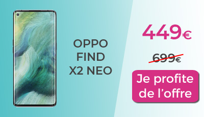 Sorti au début de l'été 2020, l'Oppo Find X2 Neo affichait les caractéristiques d'un smartphone haut de gamme. Malheureusement son prix aussi était haut de gamme. Aujourd'hui, grâce à RED by SFR vous allez pouvoir profiter de ce petit bijou de technologie pour 449€ au lieu de 699€, soit 250€ de réduction. Vous pourrez choisir entre deux coloris et la livraison vous sera offerte.