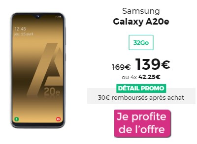 Le Galaxy A20e en promo à 139€ au lieu de 169€