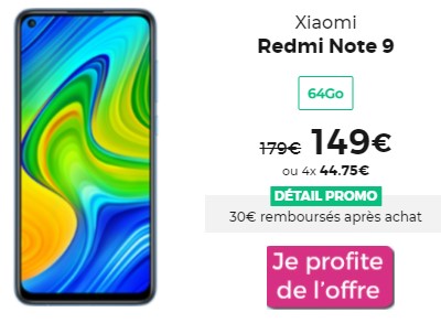Le Xiaomi Redmi Note 9 à moins de 150€ avec l'ODR de 30€