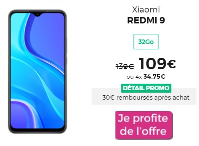 Commercialisé depuis le mois de juin 2020, le Redmi 9 est le mobile parfait pour les petits budgets. Ce modèle remisé de 30€ dans le cadre de l'opération spéciale Noël de l'opérateur RED by SFR passe au prix canon de 109€ au lieu de 139€.