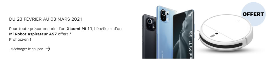 Autre bonne nouvelle : en ce moment, 100€ vous seront remboursés si vous téléchargez et renvoyez toutes les pièces demandées. Finalement, le mobile de la marque chinoise ne vous coûtera donc que 1€ ! Enfin, notez que pour l’acquisition du pack SFR Xiaomi Mi 11 5G avant le 8 Mars 2021, le Mi Robot aspirateur AS7 vous sera envoyé en cadeau sur demande après inscription sur la page suivante : INSCRIPTION