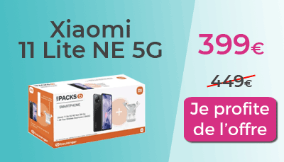 L'enseigne Boulanger propose pour la période des fêtes de fin d'année des packs smartphones + accessoires ! On vous présente aujourd'hui le pack contenant un smartphone très récent de la marque Xiaomi dévoilé en septembre 2021 : le Xiaomi 11 Lite 5G NE ainsi que des écouteurs sans fil de la même marque. Cette offre est présentée avec une promotion de 50€, vous pouvez donc obtenir un nouveau smartphone + des écouteurs sans fil Xiaomi au prix de 399€ au lieu de 449€.