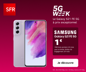 Jusqu’au 11 avril 2022, la 5G Week SFR bat son plein ! Tout au long de cette opération promotionnelle, si vous vous abonnez au forfait 150 Go 5G de SFR à 30 € mensuels la première année et 45 € ensuite avec engagement de 24 mois (remise de 8 € pour les clients box), vous pouvez vous offrir un Samsung Galaxy S21 FE 5G 128 Go à prix réduit.