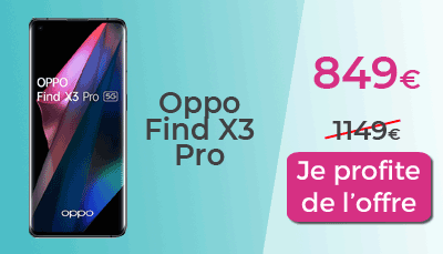 Le Find X3 Pro est disponible avec une superbe promo chez Boulanger ! Vous allez pouvoir vous le procurer au prix de 849€ au lieu de 1149€ ! Le Find X3 Pro est un smartphone équipé d'un écran Amoled d'un taux de rafraîchissement de 120 Hz, de 3168 X 1440 px de définition et de 6,70 pouces de diagonale. À noter que l'écran est aussi enrichi d'un capteur d'empreintes digitales pour vous authentifier et d'un moteur de reconnaissance faciale.