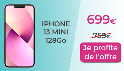 Ne vous inquiétez pas, cette fois-ci il est juste question d'un achat smartphone sans forfait mobile. En effet, l'opérateur propose en ce moment l'iPhone 13 mini à un prix réduit qui défie toute concurrence pour un modèle neuf. C'est au prix de 699€ au lieu de 759€ que SFR vous propose cette promo iPhone, soit une remise immédiate de 60€.