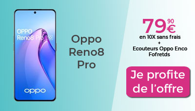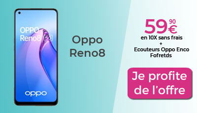 Dévoilé en août 2022, l’Oppo Reno 8 est le tout dernier smartphone de la marque. Ce modèle de milieu de gamme est équipé d'un écran AMOLED de 6,43 pouces avec un taux de rafraîchissement de 90 Hz. Il est doté d’un SoC Mediatek Dimensity 1300 couplé à 8 Go de RAM (extensible) et 256 de stockage. Il propose une batterie de 4500 mAh compatible charge rapide "SuperVOOC" 80 W.