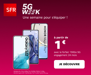 Jusqu’au 5 septembre 2022, c’est la 5G Week chez SFR ! Durant cette opération promotionnelle de rentrée, l’opérateur au carré rouge casse les prix sur une sélection de smartphones premium compatible avec la cinquième génération de réseaux mobiles. La seule condition est de souscrire à l’un des forfaits SFR. Vous aimeriez pouvoir passer la vitesse supérieure sans vous ruiner ? Si vous prenez par exemple un abonnement mobile 150 Go, vous pourrez notamment vous offrir les modèles suivants bien moins cher :