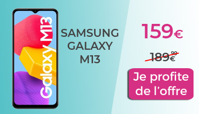 Elle dépasse les 150€ mais pas de beaucoup c'est pour cela qu'on se permet de vous présenter cette promo Black Friday. Amazon vous permet d'obtenir le Galaxy M13 à seulement 159€ au lieu de 189,90€. C'est certainement l'un des téléphones Samsung les moins chers que vous trouverez sur le marché.