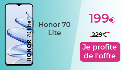 A peine sorti, le Honor 70 Lite est déjà en promotion. Avec une remise immédiate de 30€ chez RED by SFR, ce nouveau Smartphone 5G est disponible à seulement 199€ au lieu de 229€ sans abonnement. Et ce n'est pas tout, pour ceux qui optent pour un forfait mobile RED sans engagement dès 6.99€, un remboursement différé de 20€ s'ajoute, faisant baisser le prix du Honor 70 Lite à 179€. Le Honor 70 Lite est un smartphone entrée de gamme qui ne manque pas de caractéristiques intéressantes pour les utilisateurs. La compatibilité 5G et la batterie de 5 100 mAh sont des points forts, tout comme les performances et la qualité de l'appareil photo. Le tout est proposé à un prix attractif de 249.90€ pour sa version 4+128Go sur le site Honor, et encore moins cher chez RED by SFR.