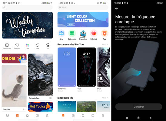 La luminosité de l'écran du Xiaomi 13 Pro est tout à fait satisfaisante, permettant une utilisation en plein soleil à l'extérieur tout en restant agréable et peu fatigante pour les yeux, même dans la pénombre. Un mode lecture est proposé pour limiter la fatigue oculaire et il y a trois schémas de couleurs : intense, saturé et couleurs originales. Un menu Paramètres avancés permet également de choisir la gamme de couleurs utilisée entre Original, P3 ou sRGB, avec la possibilité d'activer une fonction qui adapte les couleurs en fonction de l'éclairage ambiant.
