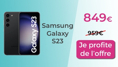 Le Galaxy S23 5G, modèle noir, à 256 Go de stockage est en ce moment en promotion sur Boulanger à seulement 849 € au lieu de 959 € ! Pour les French Days, en plus de cette promotion, son achat vous donne le droit à 100 € de bonus de rachat en magasin sur votre ancien appareil. Une très belle opportunité ! Et bien sûr, comme pour les deux offres précédentes, vous pouvez payer sans frais en 3 à 4 fois, de quoi acquérir ce très bon smartphone à moindre prix.