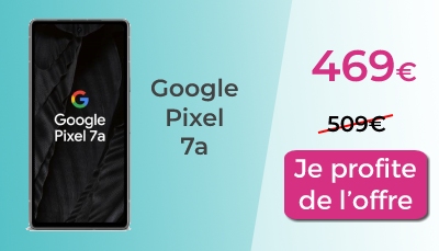 Le Google Pixel 7a 5G est également disponible avec une très bonne réduction sur RED by SFR puisqu’il passe de 509 € à 469 €, avec la possibilité d’ajouter à cela, jusqu’à 100 € de reprise possible sur votre ancien téléphone. Le Pixel 7a est équipé d’un écran OLED de 6,1 pouces avec une technologie FHD+ et 90Hz de taux de rafraîchissement… Autant dire qu’il possède l’un des écrans les plus beaux de sa catégorie. Et avec son double capteur photo 64 mégapixels, il est également un poids lourd dans le domaine de la photographie.