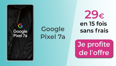 Le Google Pixel 7a est le tout nouveau smartphone de Google. Il s’agit d’un smartphone haut de gamme proposant des points fort incontestables, que ce soit grâce à sa puce Tensor G2, ou même à son double appareil photo dont le capteur principal ne fait pas moins de 64 mégapixels. Cela fait quelques semaines qu’il est disponible et pour l’occasion différentes offres de lancement ont été proposées par les grands commerçants. L’une d’entre elles a particulièrement attiré notre attention, il s’agit de celle de Boulanger qui offre un financement spécial pour se procurer ce téléphone haut de gamme en étalant son prix dans le temps, et le tout sans frais. Précisément, il vous est possible de payer votre téléphone en 3, 4, 5, 10 ou même 15 fois ! Et sans frais en plus de cela, ce qui vous ferait 29 € par mois seulement avec un acompte de 103 € le premier mois. Une offre incroyable qui vous permet d’acquérir ce superbe téléphone en dépensant très peu chaque mois afin de maîtriser votre budget au maximum. Mais ce n'est pas tout...
