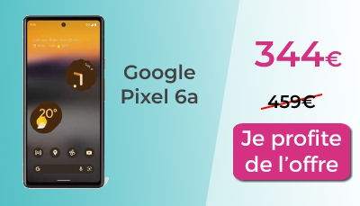 En ce moment sur Boulanger, le Google Pixel 6a est proposé à 344 € au lieu de 459 € ! Une réduction très intéressante qui vous permet de découvrir à un prix plus qu’intéressant ce très bon téléphone pas cher. Avec Boulanger, vous disposez de services de qualité : retrait en magasin très rapide ; une garantie de 2 ans ou même la possibilité de vous abonner à un service de réparation en illimité pour 9,99 € par mois. Ajoutons que côté technique, ce smartphone embarque un double capteur photo à l’arrière et une batterie de 4306 mAh, ce qui vous permet de prendre des photos absolument saisissantes et de le laisser tourner pendant des heures sans besoin de la recharger !