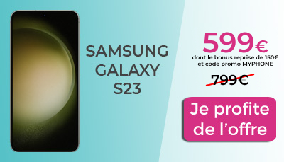 Nous avons déniché pour vous la bonne affaire du moment pour se procurer le Galaxy S23. Et c'est direcement dans la boutique officielle Samsung que ça se passe. Dans le cadre de la nouvelle opération Samsung Week, les derniers Smartphones haut de gamme sont mis en avant dont le Galaxy S23. Affiché à 799€, vous pouvez l'obtenir à seulement 599€ avec une remise immédiate de 50€ et un bonus reprise de 150€. Pour bénéficier de la remise immédiate de 50€, il suffit de renseigner le code promo MYPHONE lors de la commande. Pour le bonus reprise, vous devez restituer votre ancien mobile. Notons que quelque soit l’état de votre ancien appareil le montant de la reprise est de 150€. Vous économisez ainsi 200€ au total sur ce modèle phare du géant sud coréen Samsung.