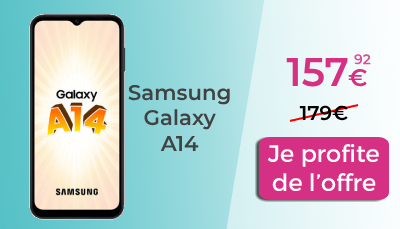 Sorti en janvier 2023, le Samsung Galaxy A14 est un smartphone parfait pour les petits budgets. Il dispose d’un écran de 6,6 pouces et est équipé d'un triple appareil photo arrière de 50, 5 et 2 MP, ainsi que d'une caméra frontale en forme de goutte d'eau pour les selfies de 13 MP. Il fonctionne sous Android 13 avec l'interface utilisateur One UI 5 et est propulsé par le processeur Mediatek Helio G80. Avec 4 Go de RAM et 64 Go de stockage, extensible via une carte MicroSD, il offre une performance fluide. Le Galaxy A14 est équipé de la connectivité Wi-Fi ac et Bluetooth 5.3, et possède un connecteur mini-jack de 3.5 mm. Sa batterie de 5000 mAh supporte une charge rapide de 15 W.